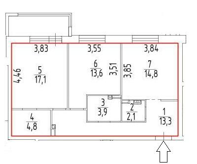 3-комн. квартира, 69.60 м²